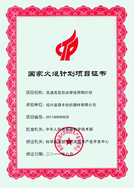 浙江鼎豐紡織器材有限公司始建于1986年,是一家專業(yè)生產(chǎn)各類無梭織機(jī)用鋼筘:噴氣筘、噴水筘、劍桿筘、其他類型鋼筘;鋁合金綜框、鋼片綜、停經(jīng)片、經(jīng)軸、織軸、卷布輥等產(chǎn)品及配件的民營(yíng)企業(yè)。